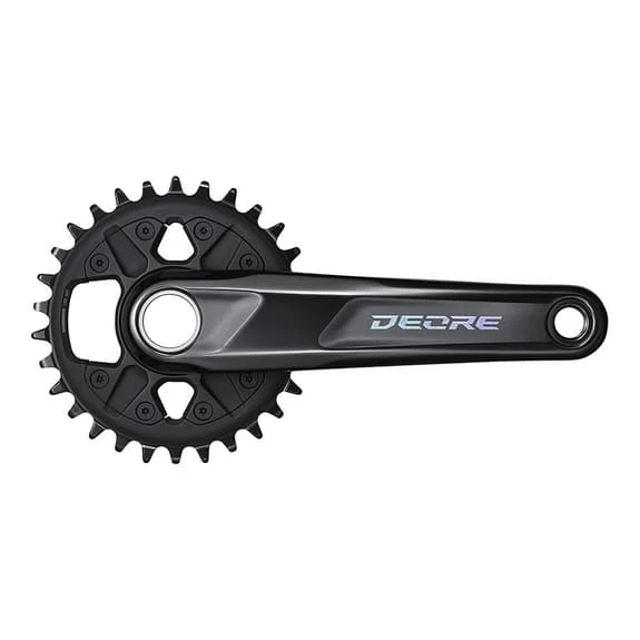 The Shimano Deore M6100 12V 32D BOOST crankset has an all-new construction and uses direct mount chainrings, a special chainring tooth profile for improved chain retention, and a 178 mm Q-Factor compatible with 148mm O.L.D. frames.