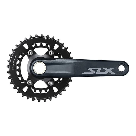 The Shimano SLX M7100 12V 36/26D 175mm crankset has an all-new construction and uses direct mount chainrings, a special chainring tooth profile for improved chain retention, and a 172mm Q-Factor.