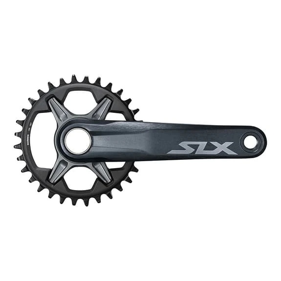 The Shimano SLX M7120 12V crankset has an all-new construction and uses direct mount chainrings, a special chainring tooth profile for improved chain retention, and a 178mm Q-Factor.